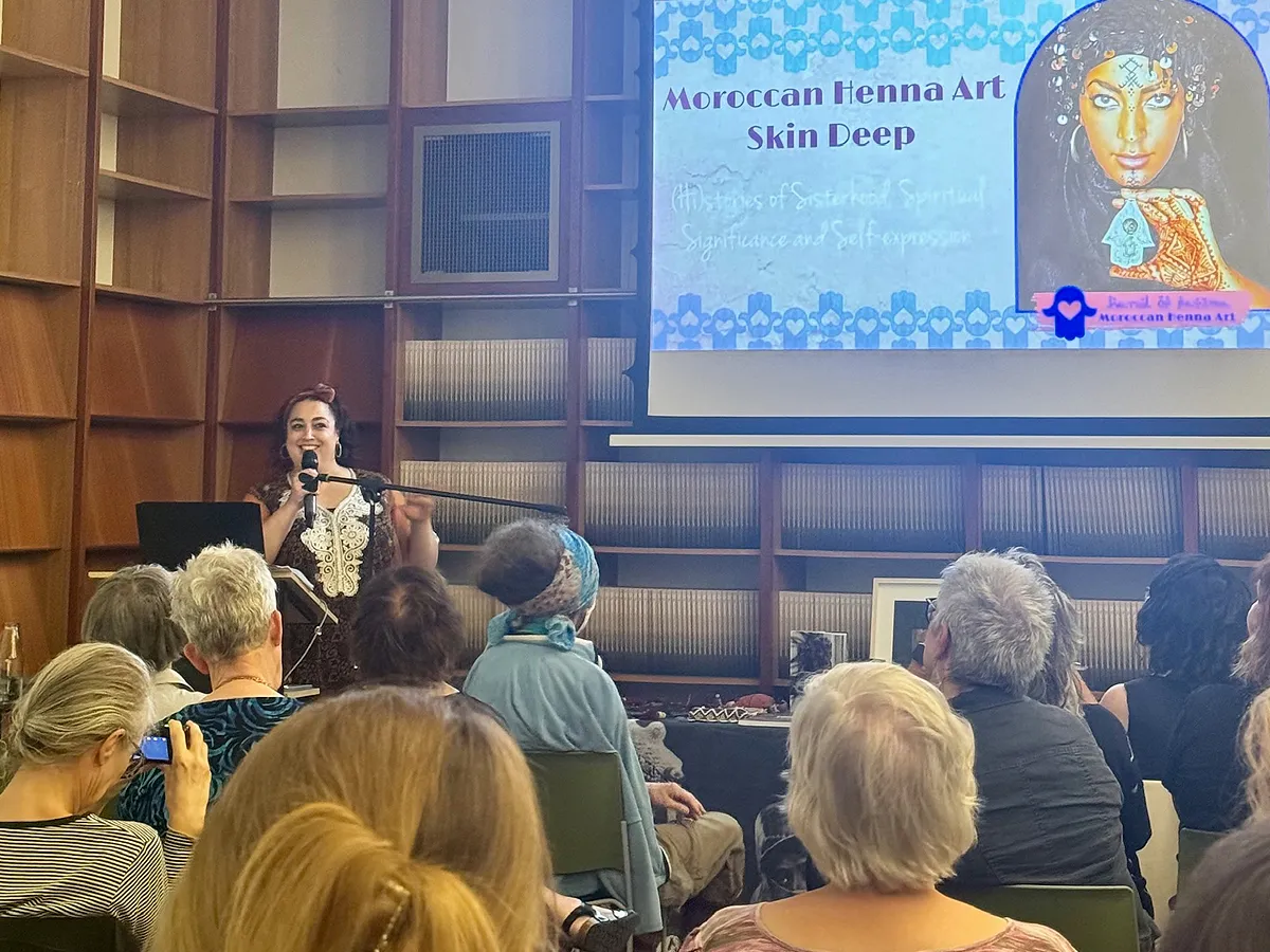 Mijn expertise op het gebied van Marokkaanse Henna Kunst is een combinatie van kennis en kunde, opgedaan door 30 jaar research en ervaring in de Marokkaanse community in Nederland, de vele omvangrijke reizen naar Marokko en het uitvoeren van ontelbare henna rituelen. Het gaat verder dan de toegepaste techniek. Het zijn verhalen van sisterhood, female empowerment, cultureel erfgoed, amazigh symboliek om er maar een paar te noemen. Door middel van inspirerende lezingen deel ik deze rijke tradities met trots.